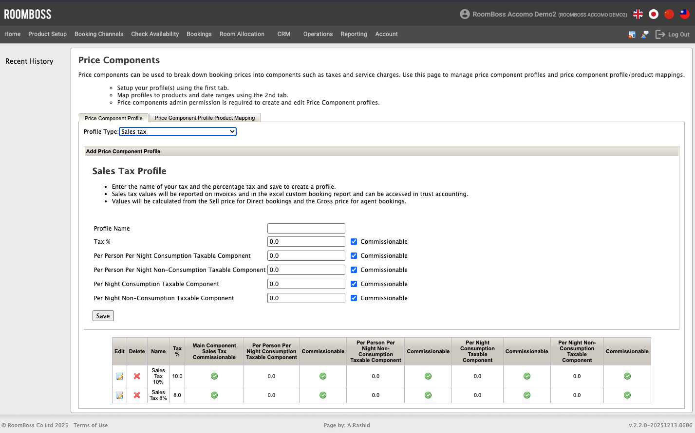 Rates and booking amounts in RoomBoss are considered to be inclusive of all taxes.