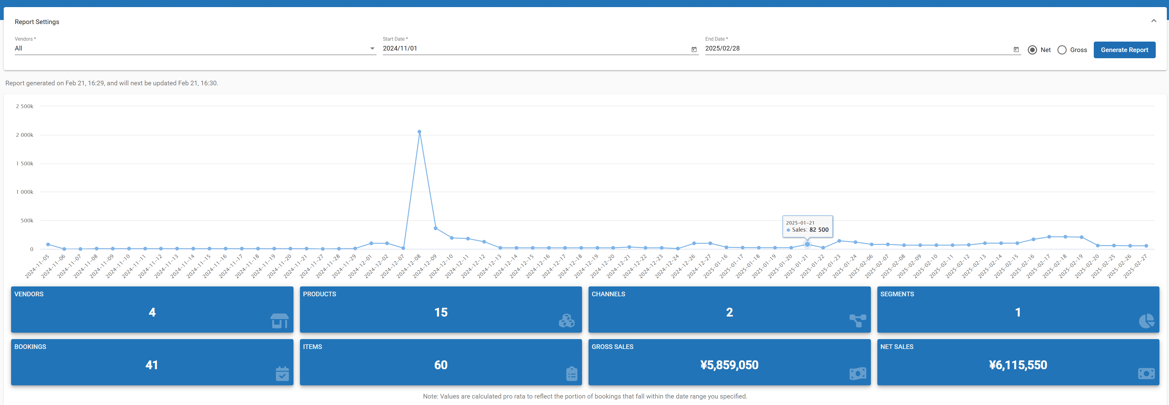 This report presents aggregate statistics over the specified period and specific Vendors in your Report. From the Booking Statistics Report II, it will display the following data: