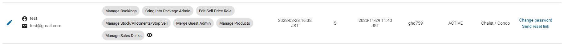 - The Super Administrator can click the Send reset link, this will send a password reset email to the registered email address for the specific user.