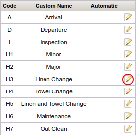 To edit the name of a cleaning event - Custom Name, click on the edit icon, make your change(s) and click on the save icon