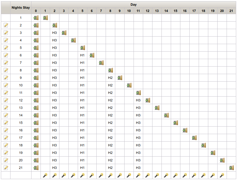 - By stay length (horizontally) – for example by adding all of the cleans for a six day booking. Click on the edit icon