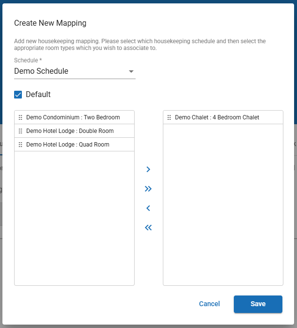 - If no default schedule is set for a room type then the first alphabetically will be used as default.
