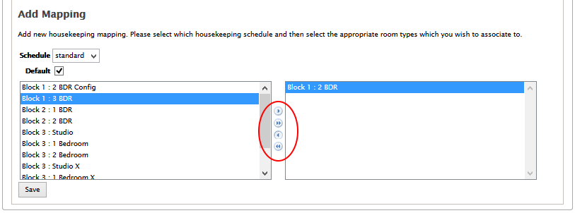 - Move all room types to be associated with this schedule to the right hand box using the arrows.