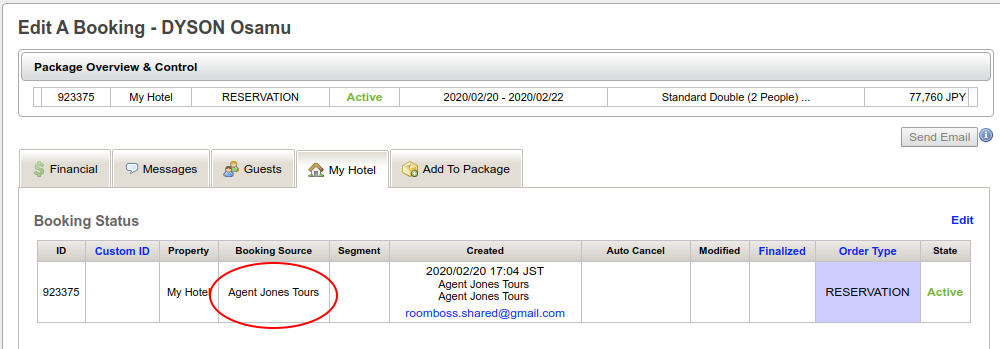 Booking Source in RoomBoss showing agent name = Agent Booking, please click here.