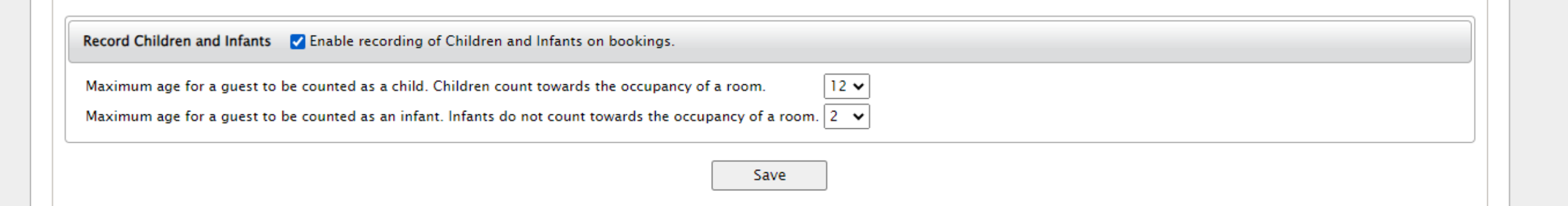 Enable recording of Children and Infants on bookings. - Set the maximum ages for children and infants.