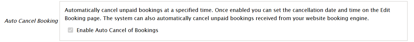 In order to make it so that polices can auto cancel unpaid bookings, Auto Cancel needs to be enabled for your account by the master user via Account → Edit account Details.