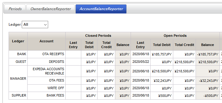 This has left us with an outstanding amount on the Manager Ledger – Expedia Accounts Receivable account, we can see this on the Omni Report, in this case we have 218,500 JPY outstanding: