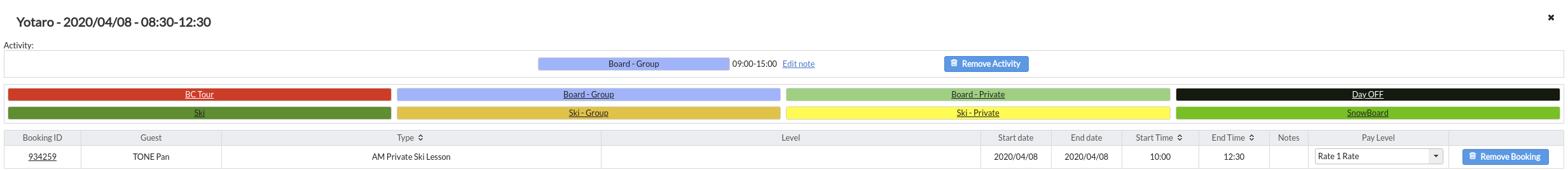 - Unallocate the lesson from the instructor with the Remove Booking button.
