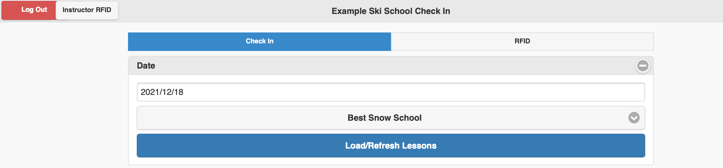 Ski School check-in displays details of all the lessons on a selected day, and allows you to set each lesson as having checked in once the customer arrives.