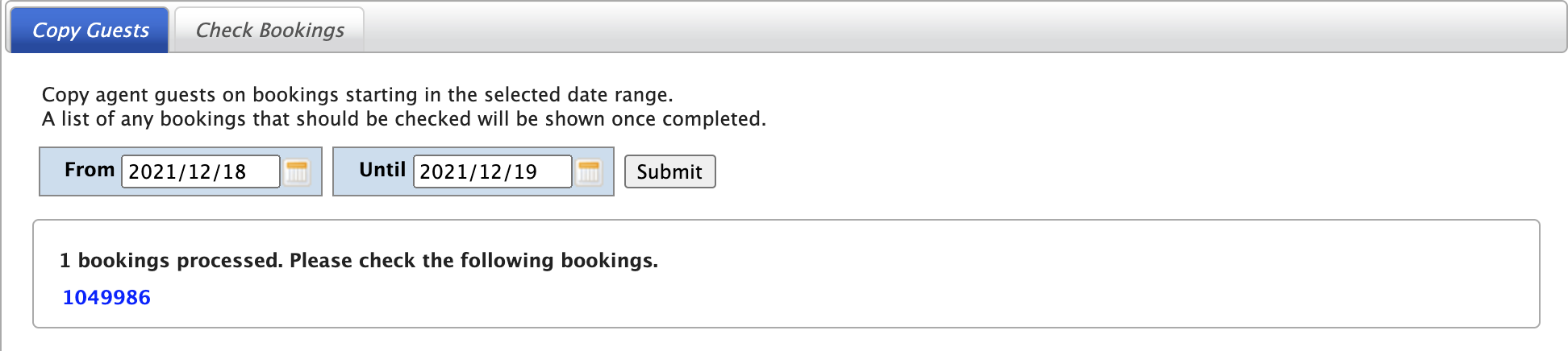The maximum date range for Copy Guests and Check Bookings is 7 days.