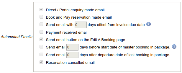 - Thank you email after the customer makes an enquiry or a booking.