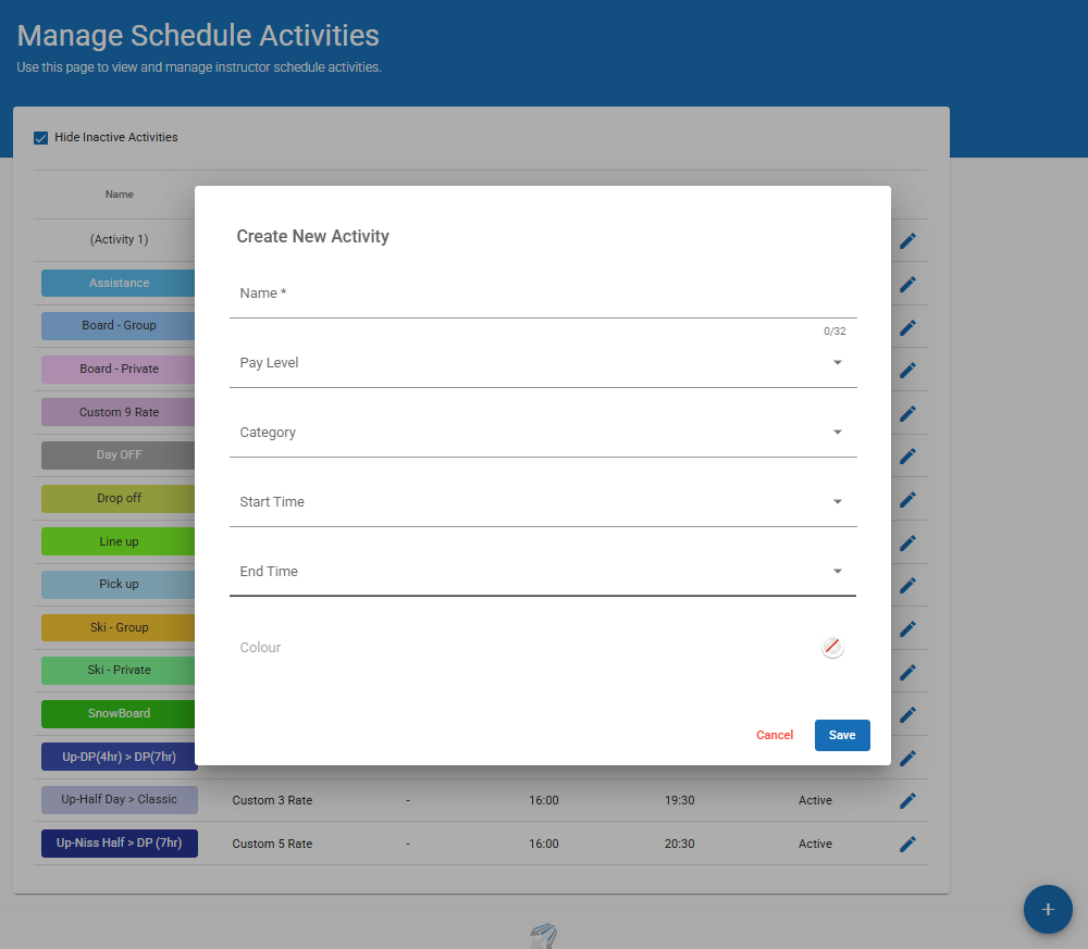 It is possible to add activity types for lesson and non lesson scheduling, these are color coded to make them easier to find.