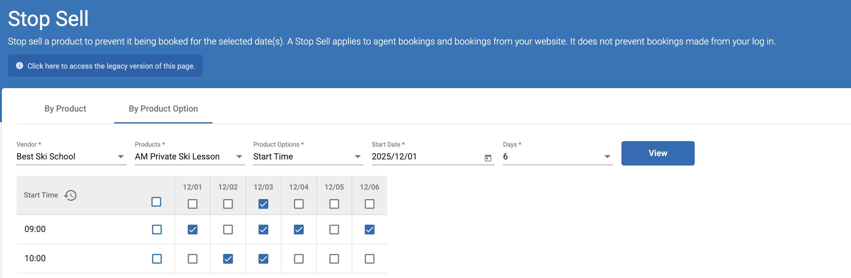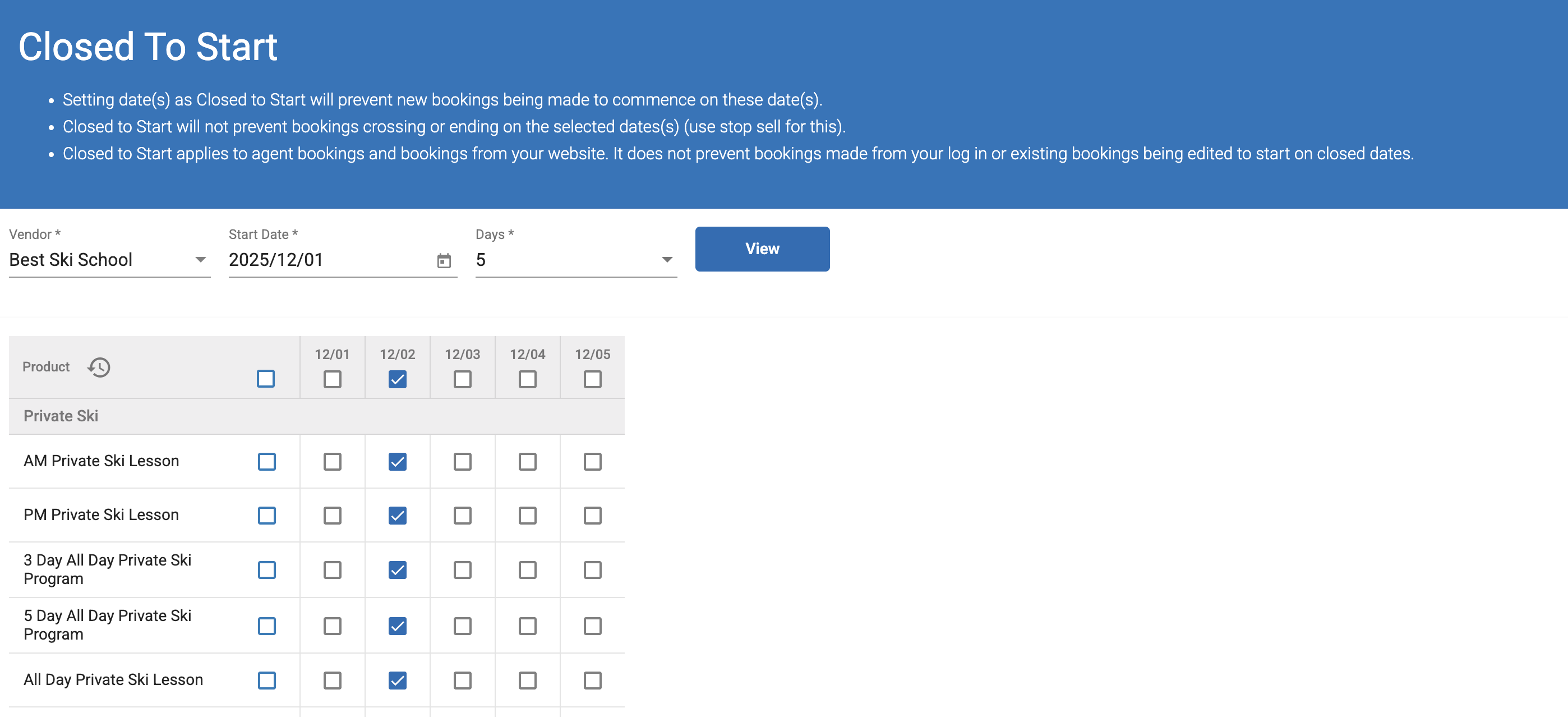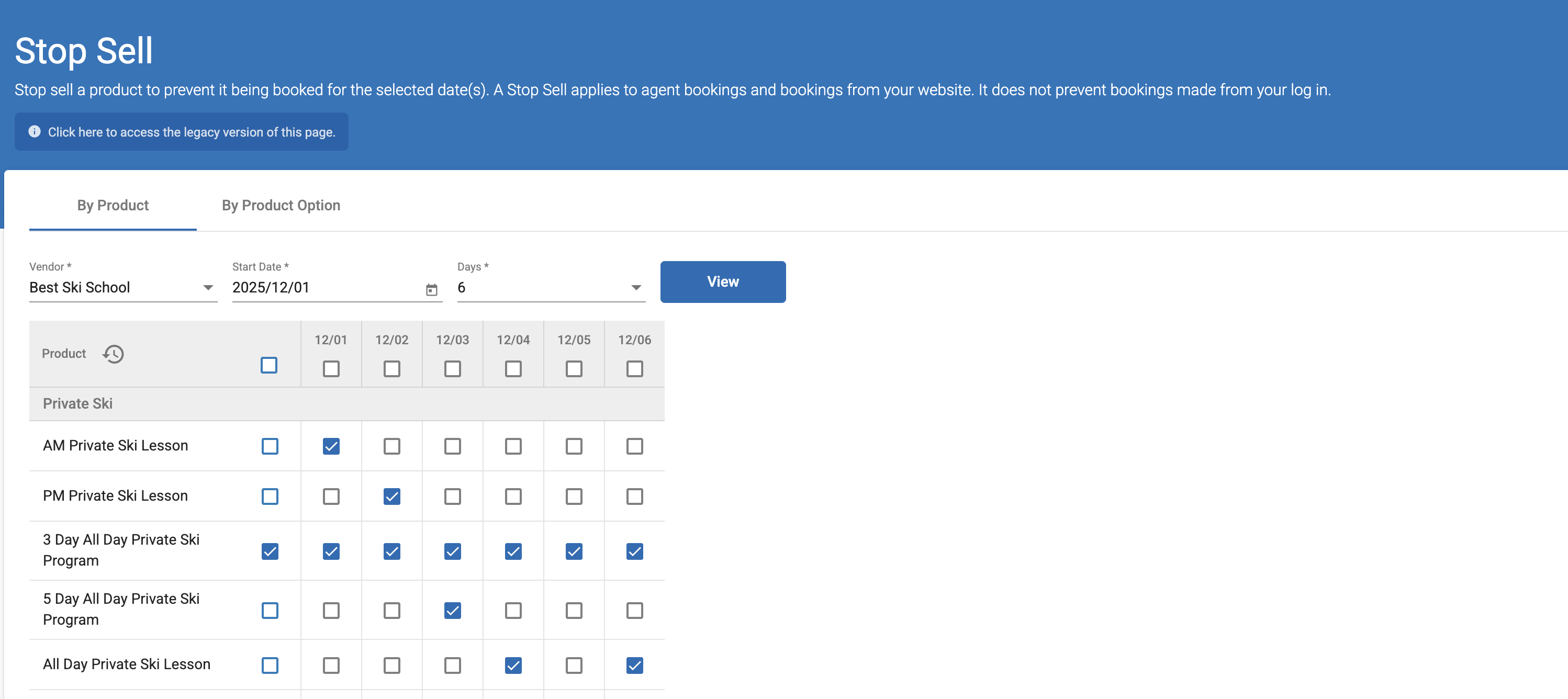 - heck the dates for the products you want to stop selling. If you check the blue checkbox on the far left, all dates within the selected period will be set to stop selling.