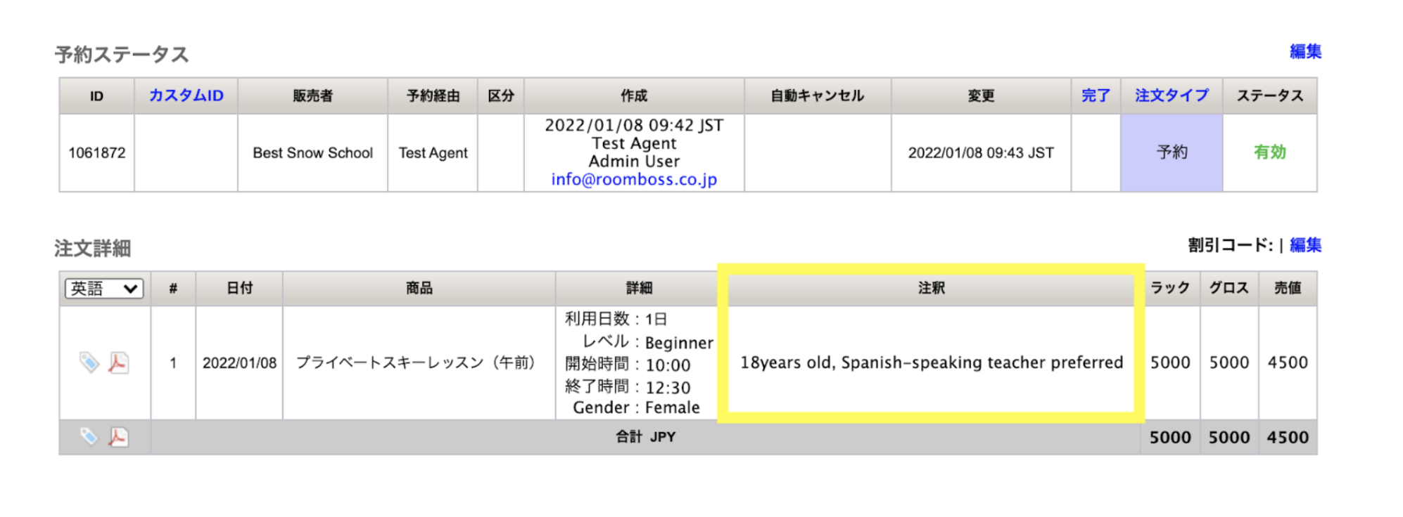 代理店からのリクエスト予約を確定した場合は、ユーザーと代理店の両方に予約確定の確認メールが自動で送信されます。