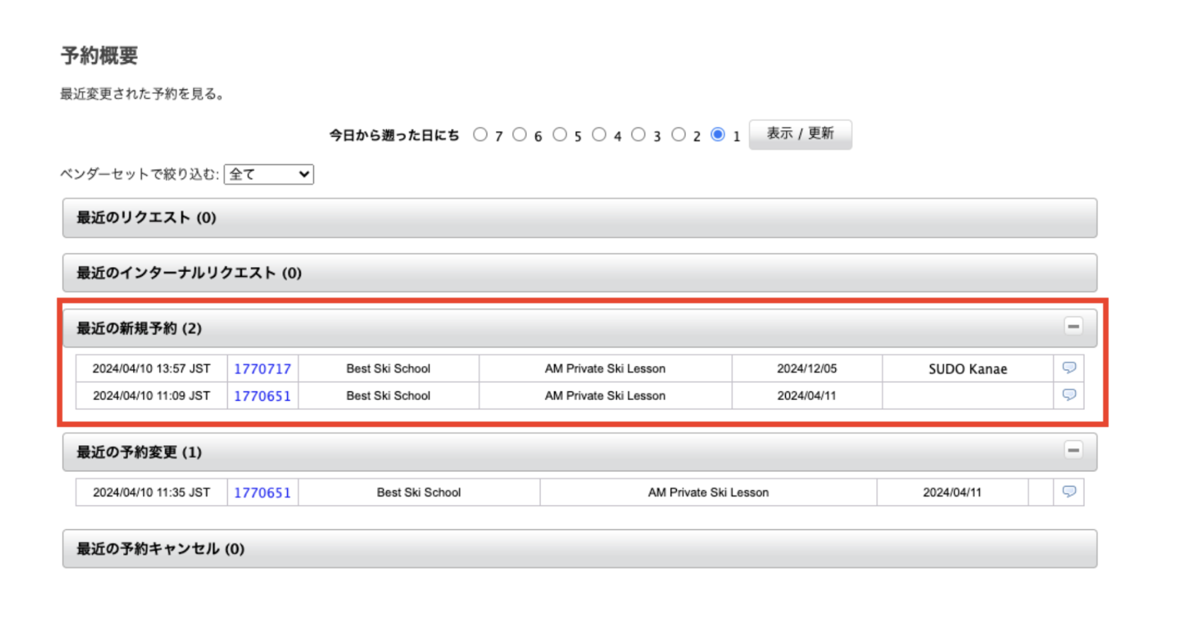 - 最近の新規予約欄に表示されます