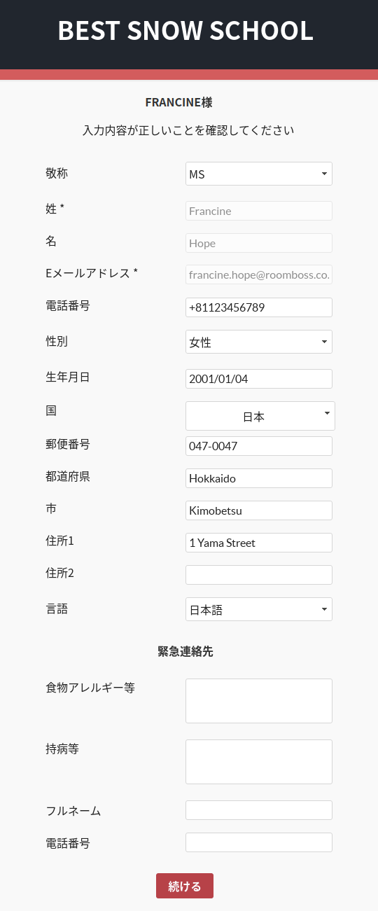 ソーシャルログイン画面よりログイン後、ゲスト詳細画面へ移り、確認を行います。
