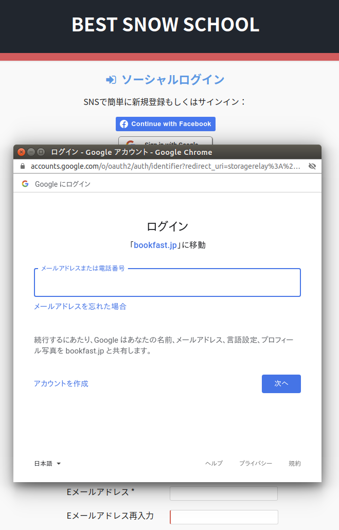 Continue with Facebook又はSign in with Googleをクリックしソーシャルログインを行います。