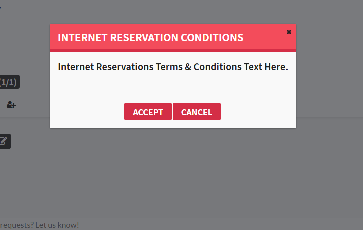 ゲストがRoomBossの予約エンジンで予約を行う場合、ここで入力された情報は、ゲストが今すぐ予約もしくはお問合せ送信ボタンをクリックした際に、ポップアップウィンドウで表示されます。ゲストは同意するボタンをクリックするまでは、先に進むことができません。
