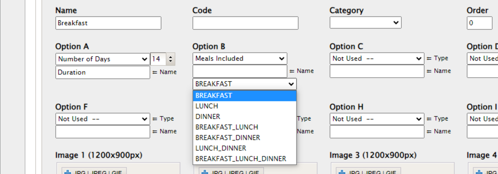 - この商品に含まれる食事のタイプを選択します。