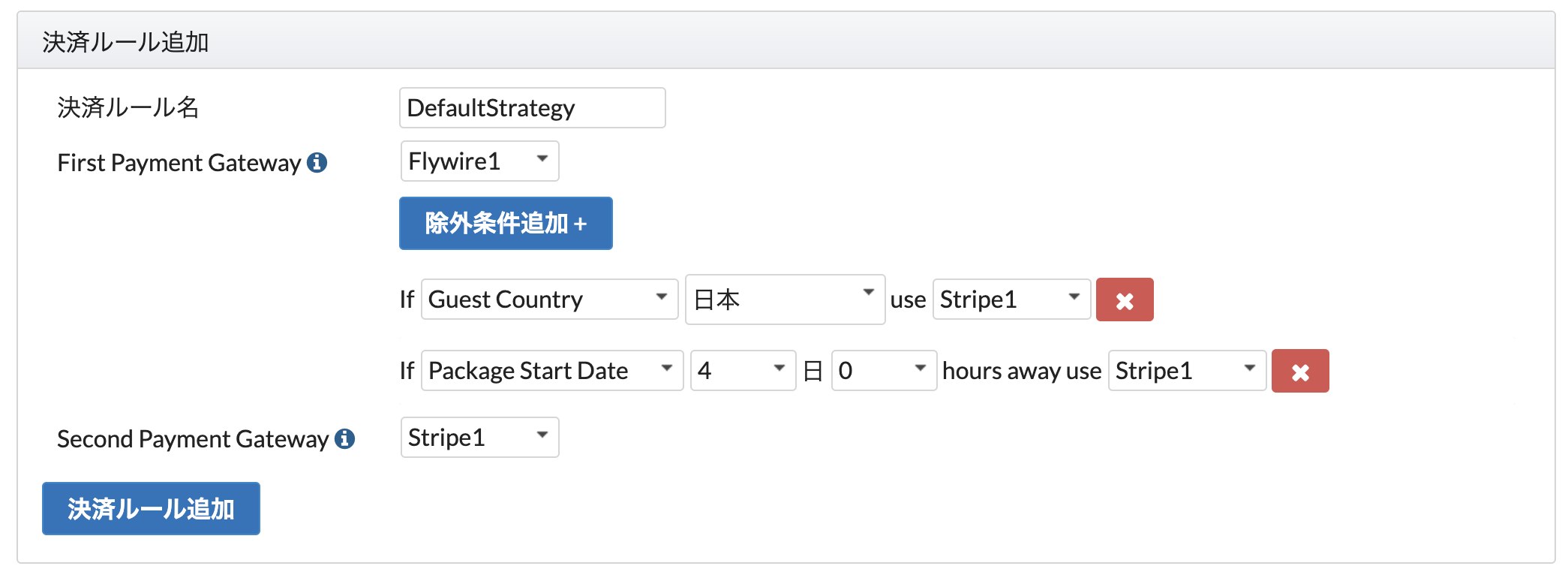 - Package Start Date - パッケージ開始までの日数と時間によって決済システムを選択