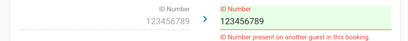 Where the information on the guest differs from the information on the ID differences will show in yellow: