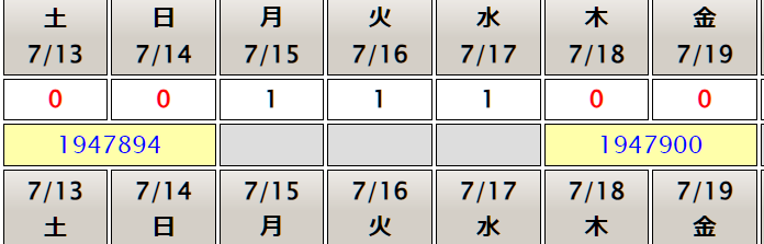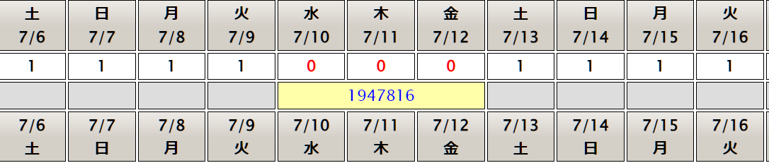 「強制ギャップ」が1のポリシーが期間7月10日の予約に適用された場合: