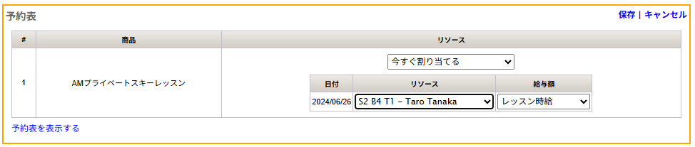 スケジュール+でレッスンを割り当てする際に、給料を選択します。