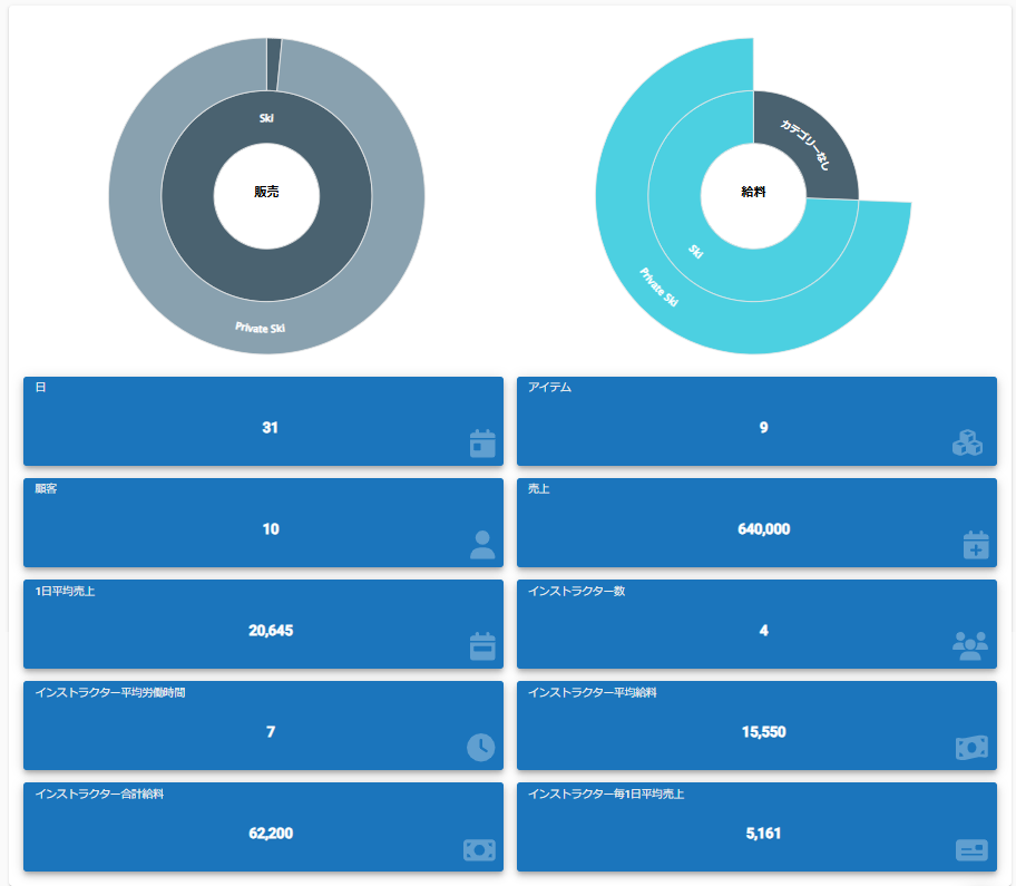 - 商品とアクティビティ別の売上に占めるインストラクター給料